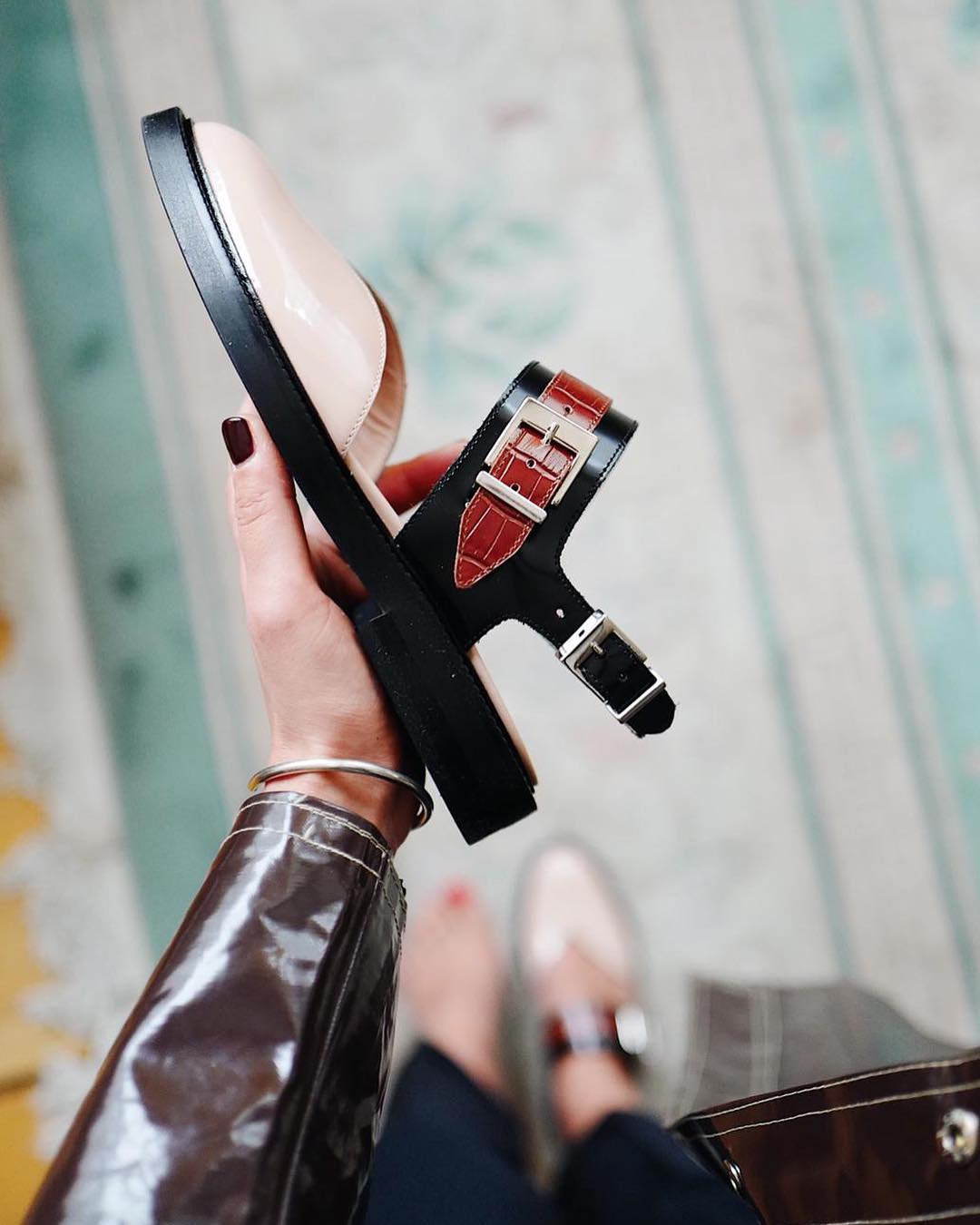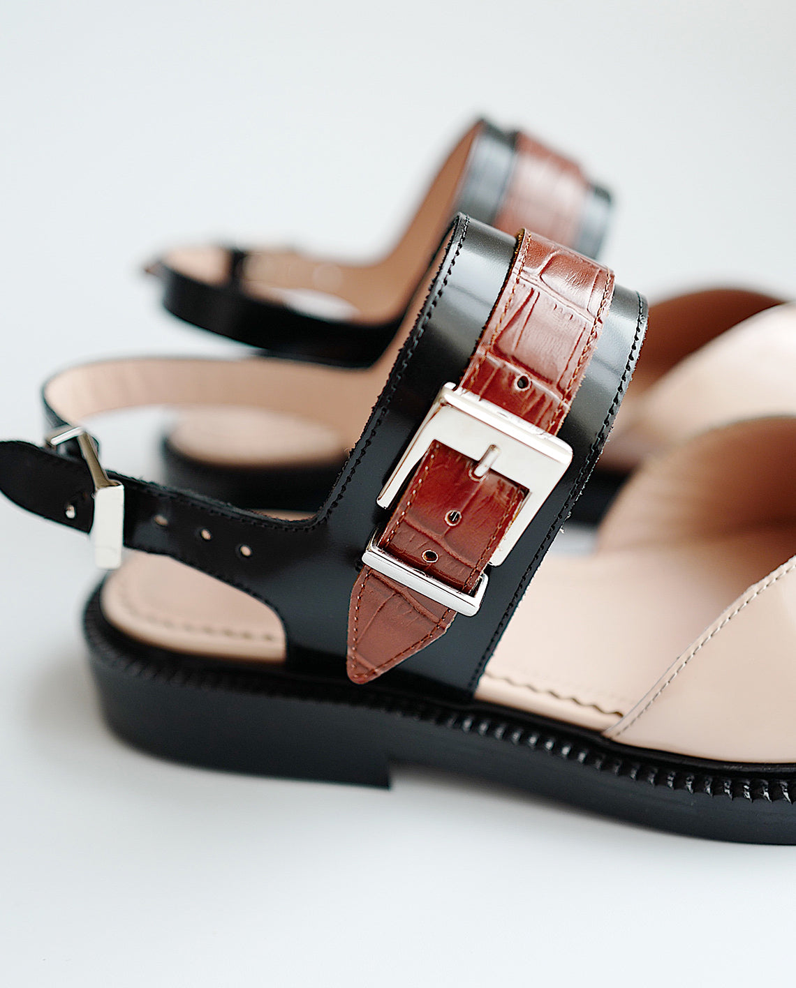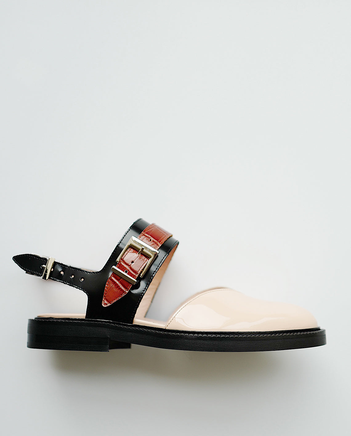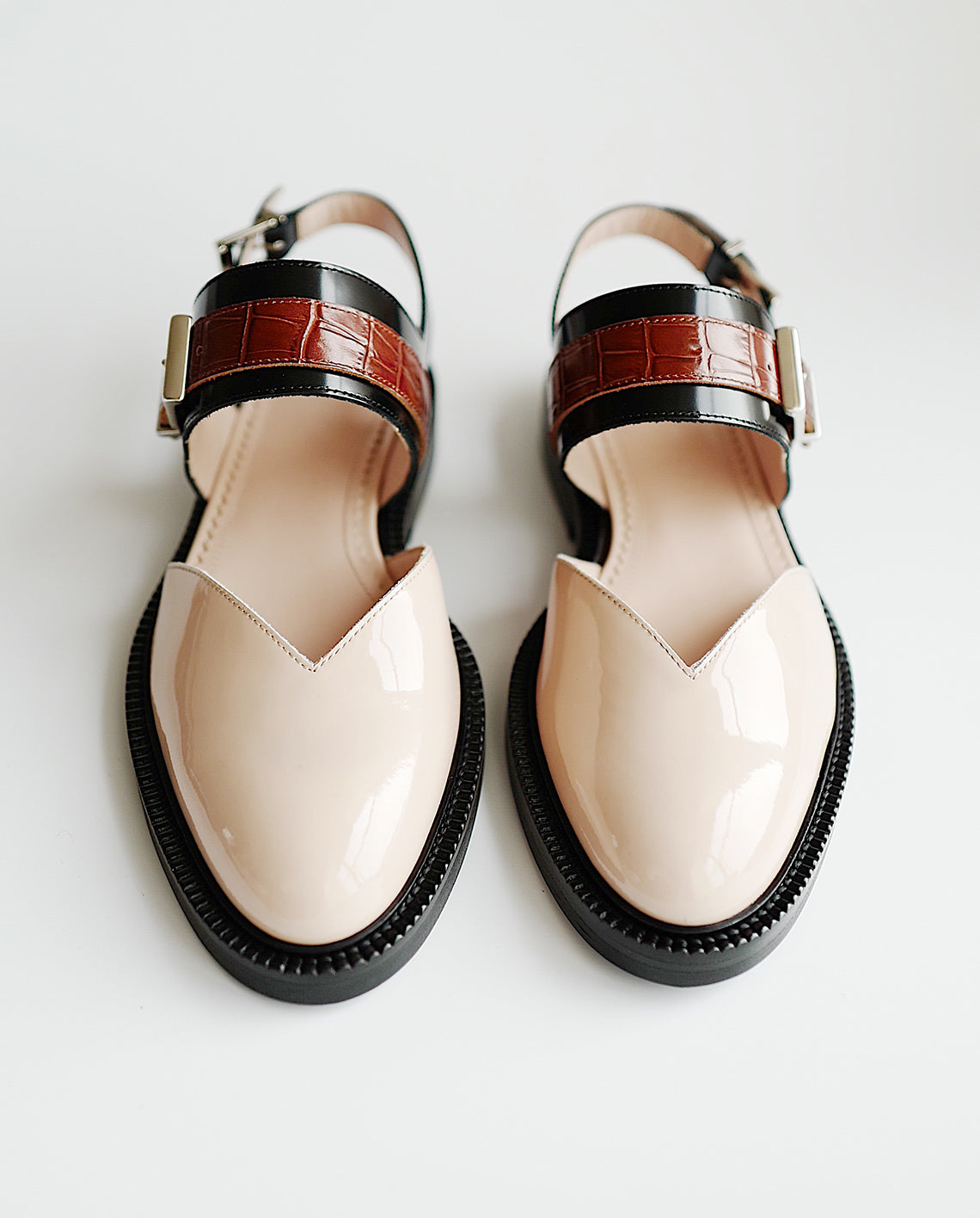 Alluring patent leather Vinyl Closed Toe Sandals. Handcrafted from the premium Italian leather, these round toe flat sandals from INCH2 feature a flat sole, a branded insole, back strap with a side decorative buckle fastening.