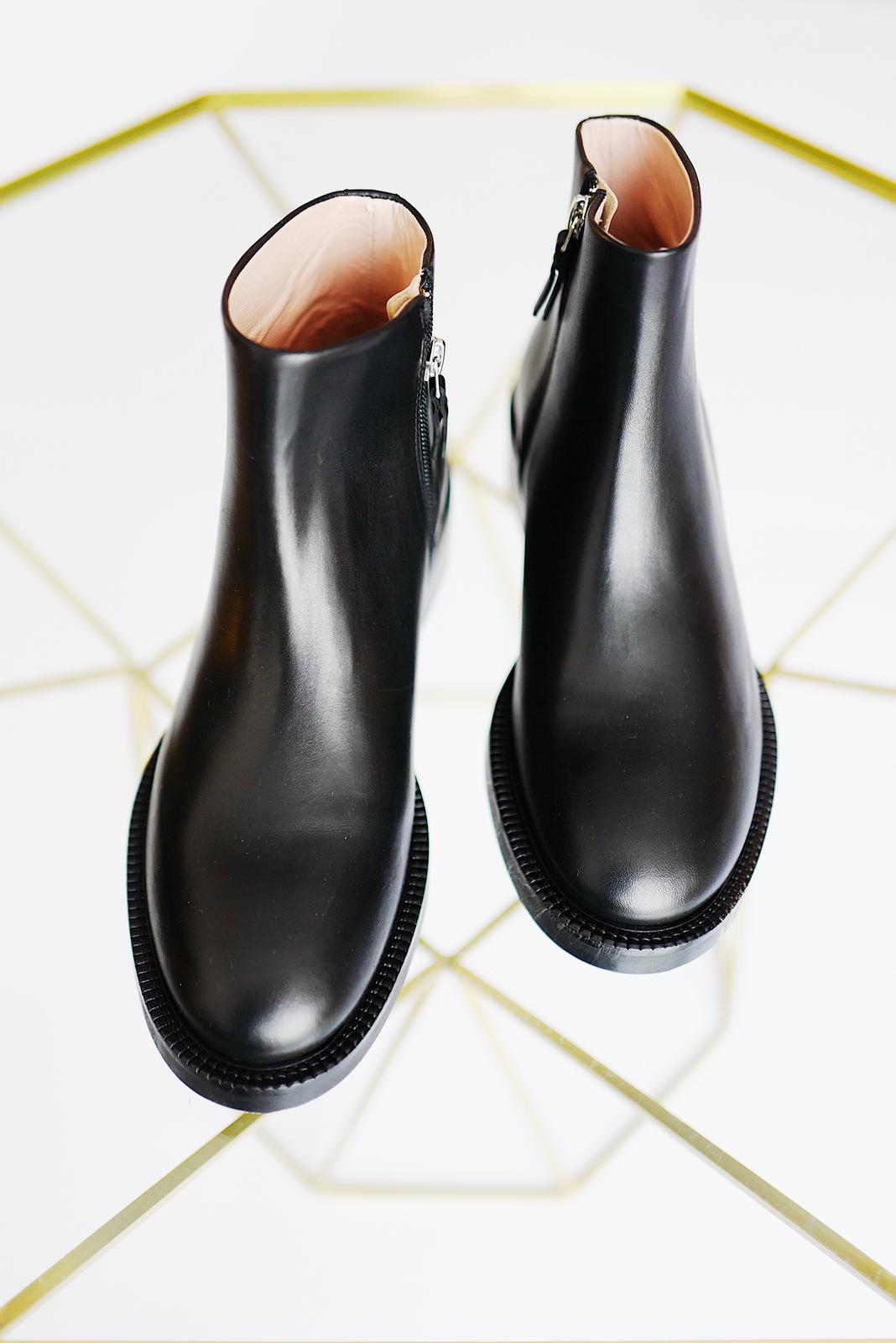 Elegant and minimalistic, these black ankle boots are inspired by eternal classics. Handcrafted from soft cow leather with powder pink goat leather lining and metal details, it is a perfect addition to Your semi-season wardrobe.