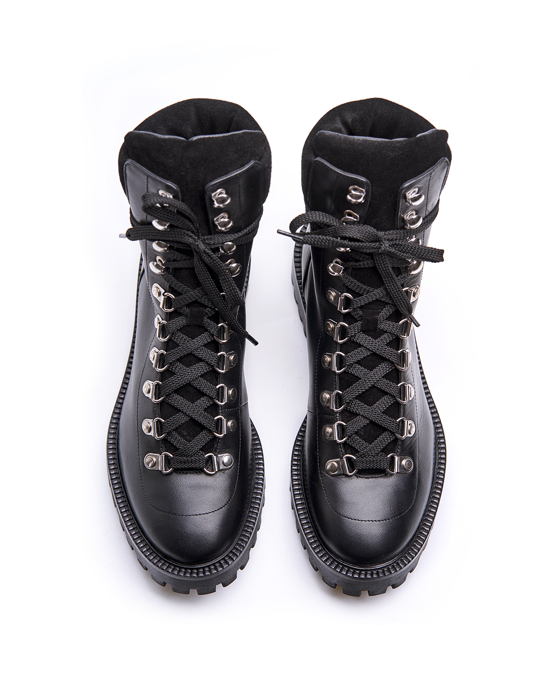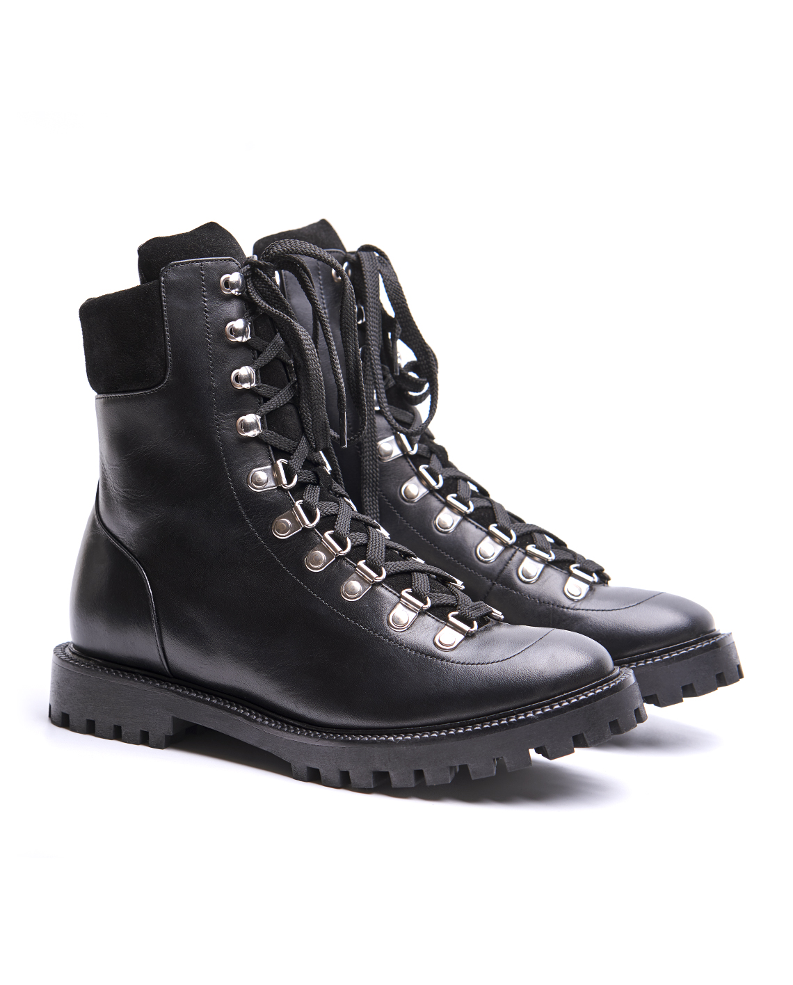 Expertly handcrafted from the softest Italian leather this utilitarian- inspired INCH2 hiking boots feature a round toe line, punkish front lace up fastening, a low block heel, defined stitched welt and leather soles for traction on most surfaces. This pair of INCH2 Grunge hiking boots draw inspiration from skiing footwear of 1920’s. These boots are the perfect match with skinny jeans, leather trousers and leather jacket. INCH2 bestsellers collection offer exquisite craftsmanship and timeless silhouettes.